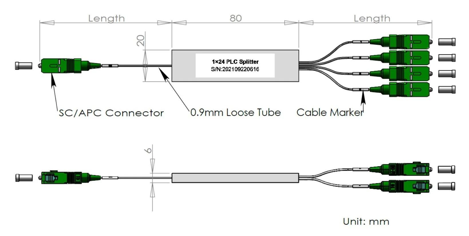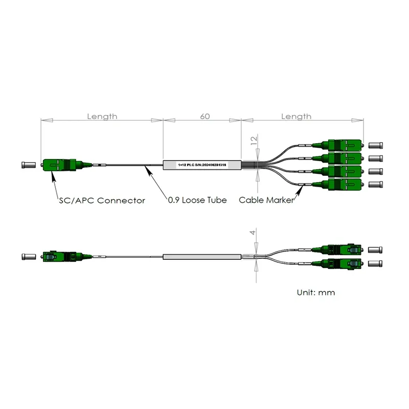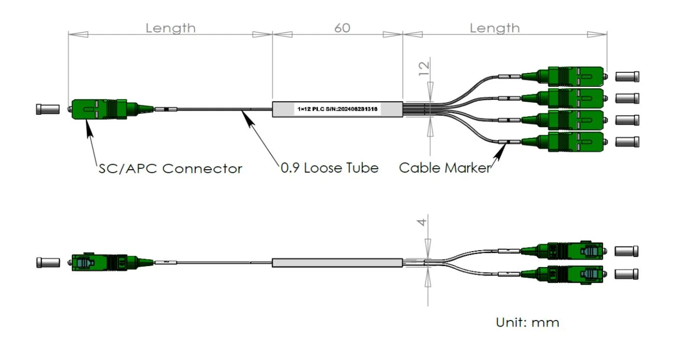 1x12/1 × 24 پی ایل سی اسپلٹر اسٹیل ٹیوب پیکیج 60x12x4 اور 80x20x4mm ، 900μm ڈھیلے ٹیوب 1.0+0.1/-0m ، ایس سی/اے پی سی کنیکٹر کے ساتھ۔کارکردگی کی وضاحتیں:پیرامیٹرزعلامتوضاحتیںیونٹچینل نمبرCH1 × 121 × 24آپریشن طول موج1260 ~ 1650nmٹیسٹ طول موج1310/1550nmورنکرم تناسب8.333 ٪4.166 ٪%اندراج ک......